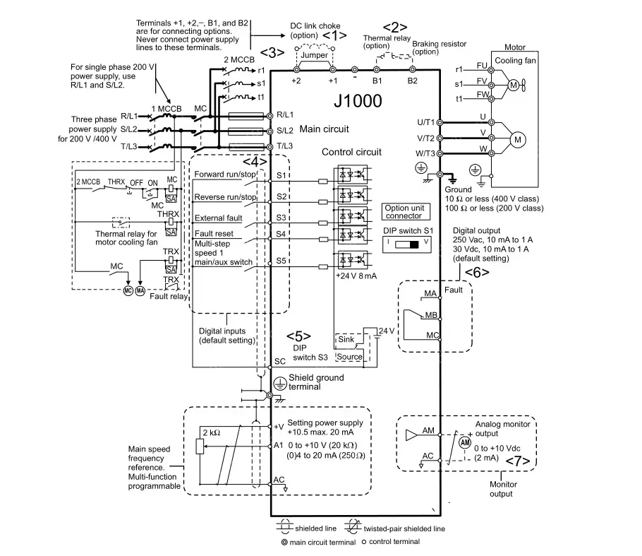 Due to the over-excitation braking function, emergency braking can be achieved even without a braking resistor.